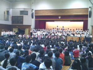 11月26日(水)に連音集会を行いました。5年生が合唱「Change」と合奏「エル・クンバンチェロ」の発表をしました。高学年らしい立派な発表をし、会場から温かい拍手が送られました。