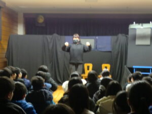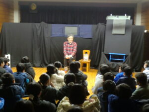 朝の読み聞かせでいつもお世話になっている「くるまざ」の皆さんから、3年生の子供たちにむけてロング読み聞かせを開いていただきました。落語や人形劇、素話、巨大絵本と、子供たちを夢中にさせる工夫が目白押しでした。