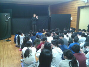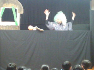 最後に「3枚のお札」のお話を人形劇風に読み聞かせしていただきました。子供たちは楽しい時間に大興奮でした。ぜひ、年末の読書のきっかけにしてほしいと思います。